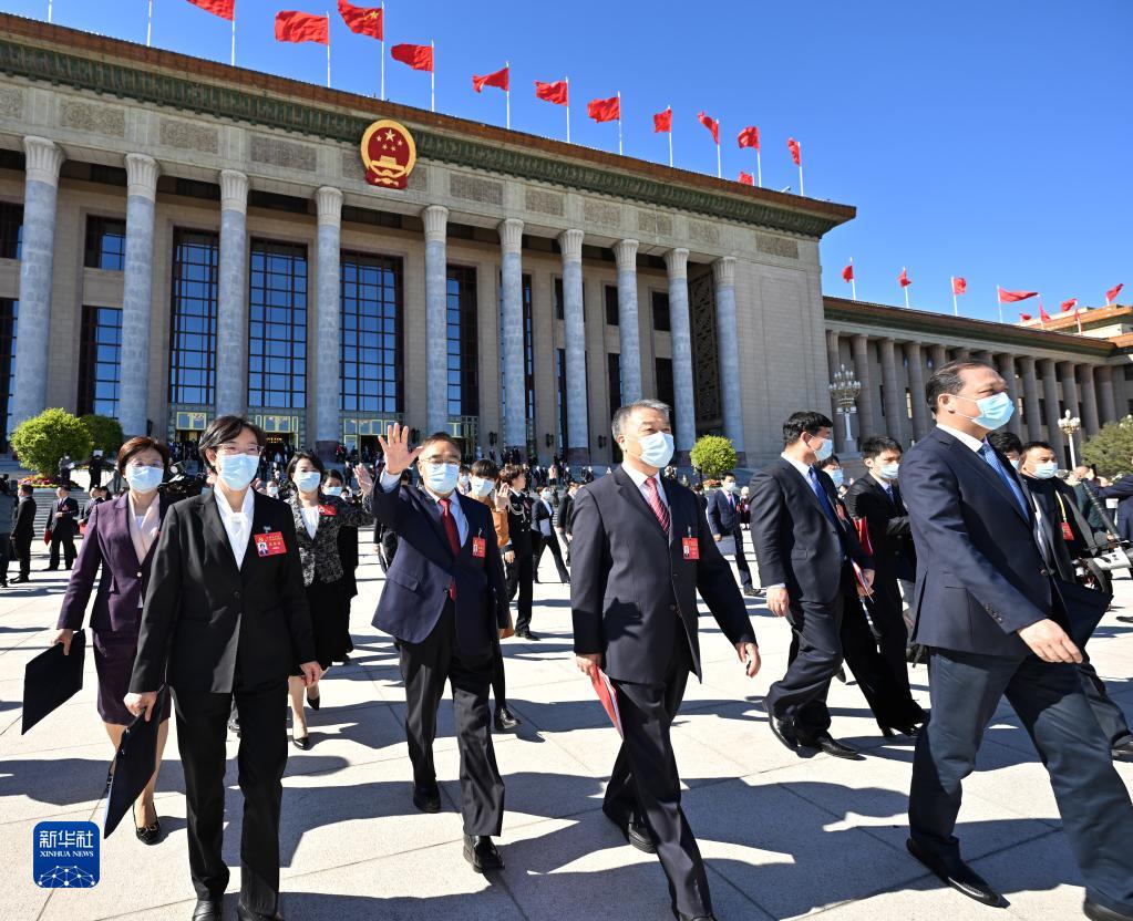 10月22日,中國共產黨第二十次全國代表大會閉幕會在北京人民大會堂舉行。這是閉幕會后,代表走出人民大會堂。 新華社記者 劉金海 攝