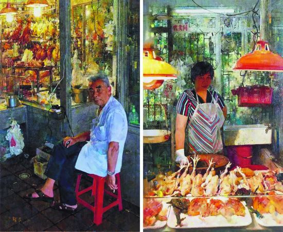 從李節平《小夫妻》、李智華《老廣東,小生活》到陸慶龍《格?;ㄩ_》、于小冬《教室的陽光》等油畫作品,從柳青《成果》到王比《好消息》等雕塑作品,從張玉惠《織情敘意》到頡元芳《遠方》等漆畫、水彩畫作品,從彭偉《而立之年》到曹丹《陽光下的大橋澆筑工》、沙永匯《金秋時代》等版畫作品,在近幾屆全國美展中嶄露頭角的美術作品,大多以描繪普通民眾的日常來展現民生變遷,通過美術家的描繪呈現了一種質樸的雋永?!缎》蚱蕖分皇谴蚬せ剜l終于蓋起了自己小巢的故事;《老廣東,小生活》在最常見的農貿集市攤販中揭示了“小生活”的滋味;《教室的陽光》所描寫的邊遠鄉村那照進教室的一縷陽光揭示了鄉村教育的改善對孩子們童年的溫暖。這些作品沒有說教,甚至也不訴諸外在的形式探索,卻以美術家對樸素生活的體味與發現來形成藝術感染力?;蛘哒f,蘊含在這些作品中的感人的要素,不是視覺形式的凸顯,而是生活的真切感所形成的一種純粹而樸素的美。表現城市農貿集市的《老廣東,小生活》《成果》等作品中,農民或個體戶形象構成了現代城市文化的鄉村記憶,蔬果與家禽構成的菜肴味蕾同樣是滿足現代城市生活的重要組成,因而,這些美術作品也是真實揭示現實民生最接地氣的一種表現形態。
