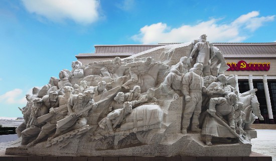 由中國美術學院師生團隊歷時三年雕刻的巨型雕塑作品《攻堅》矗立于中國共產黨歷史展覽館側,寓意面對前進路上各種挑戰,中國共產黨始終帶領人民奮斗進取、攻堅克難。