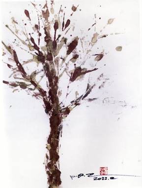 已86歲的魯光,畫思敏捷,即興隨意,作品卻寓意深刻。85歲的小說《畫魂》的作者石楠,77歲習畫,畫作色彩迷人。肖復興著作等身,畢業于戲劇學院,作品清一色戲畫,風格獨具。趙麗宏的畫,與他的詩一樣,充盈著濃濃的文人氣。連輯畫閱歷,畫哲思,畫作厚重老辣。馮秋子的畫,像她優美的散文,潑彩潑墨,抽象浪漫。
