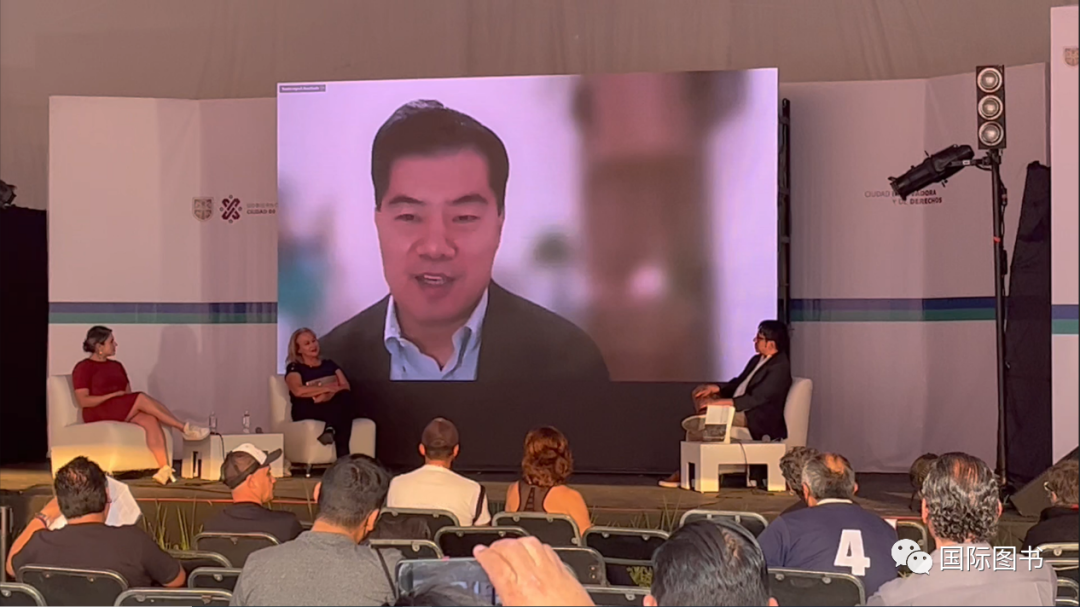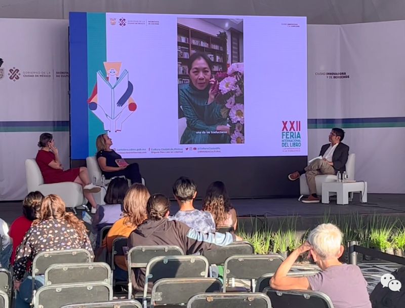 由中國作家協會主辦、中國圖書進出口(集團)有限公司承辦的2022年墨西哥“中國文學讀者俱樂部”于當地時間10月15日18:00(北京時間10月16日7:00)在墨西哥城國際書展主會場成功舉辦遲子建作品分享會?;顒訃@中國著名作家遲子建兩部譯為西班牙文的作品《額爾古納河右岸》和《燉馬靴》展開?;顒佑赡鞲绯俏幕种卮蠡顒犹幪庨L里卡多主持。智利大學講座教授孫新堂,《燉馬靴》西文版譯者、墨西哥知名漢學家莉亞娜,墨西哥二十一世紀出版社編輯埃萊娜等多位中外嘉賓出席活動并發言,其中孫新堂教授為活動的策劃和籌備提供了支持和協助。