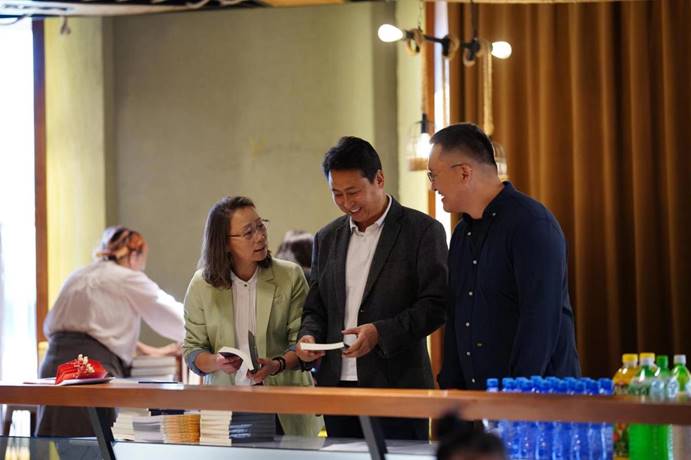 活動在悠揚的馬頭琴聲中愉快進行,嘉賓們圍繞《五彩叢書》分享各自的閱讀感受,并品嘗了以五本圖書封面為特色的“文學主題蛋糕”?!段宀蕝矔访晌陌媸侵凶g出版社與蒙古光明出版社合作推介的一套中國當代文學叢書,推介了5位中國少數民族女作家的作品。這些作品講述的關于親情、友情、生命、歷史的故事,豐富多彩的文化元素,以及女作家們豐盈委婉的筆觸,都引起了蒙古國讀者自然的共鳴。