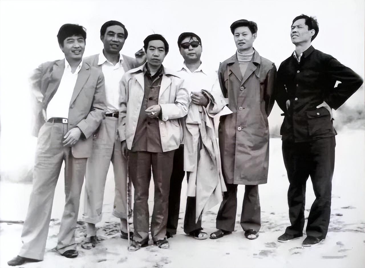 1985年秋攝于陜北毛烏素沙漠 (左起依次)子頁、白描、賈平凹 路遙、京夫、陳忠實