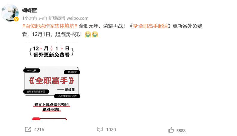11月25日上午,愛潛水的烏賊、蝴蝶藍、南派三叔、唐家三少、蕭鼎等網文大神陸續在社交媒體回應,宣布將為自己的完結作品加更番外,滿足廣大讀者的愿望。