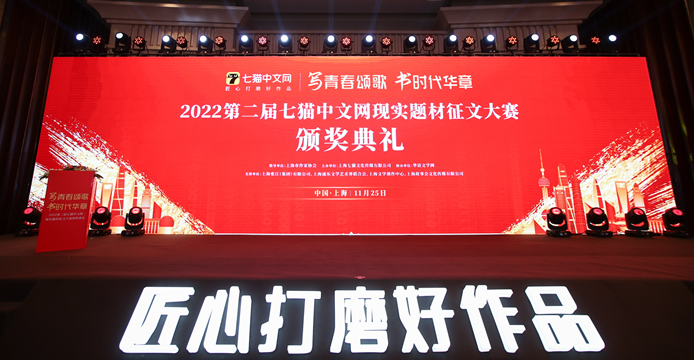 11月25日,由上海市作家協會指導,上海七貓文化傳媒有限公司(以下簡稱“七貓”)主辦,華語文學網協辦的2022第二屆七貓中文網現實題材征文大賽頒獎典禮在上海舉辦。