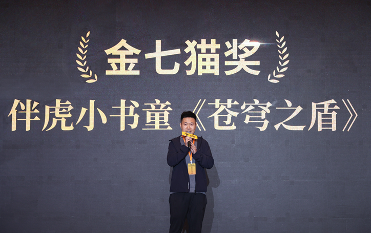 頒獎典禮現場公布了33部獲獎作品名單。獲獎作品從全國3000余部投稿作品中脫穎而出,共同分享百萬獎金。其中,以新一代國防人建設反導系統為背景的《蒼穹之盾》獲“金七貓獎”,摘得本屆大賽最高獎項?!渡n穹之盾》以國家反導系統研發為主題,講述了國防技術大學的首位航天動力學博士在一次意外的西北文件陪送之旅后,深入大漠腹地,在最貧瘠的土地上進行科研工作,和團隊一起將神州之盾鑄在蒼穹之上的故事。