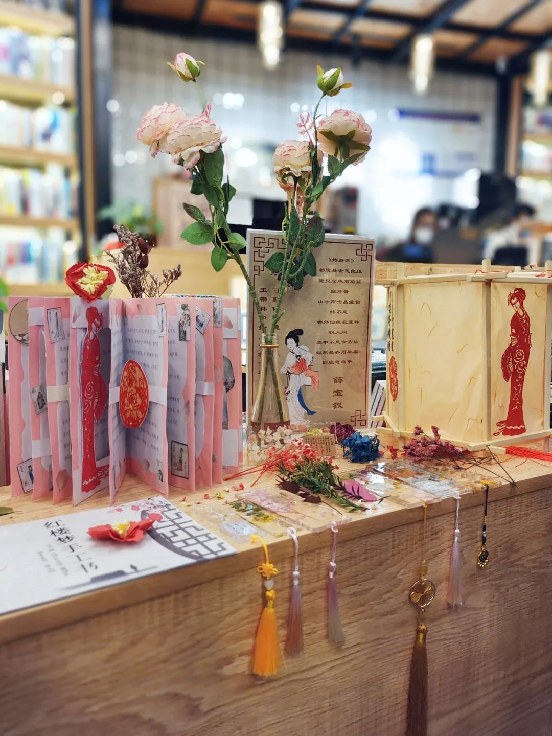 展品按照人物布局,每一個展區都有花簽、人物燈籠、手工書、人物蠟燭和剪紙等。逛展的時候,每一次轉身,每一個回眸都能看到驚喜,各類精致的手工作品,讓人目不暇接、愛不釋手。