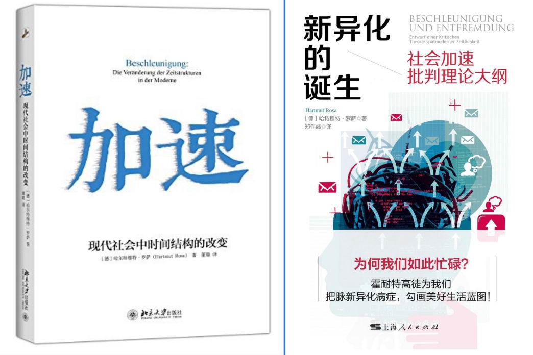 德國理論學家哈特穆特·羅薩的“加速社會”理論或能解釋這一悖論。羅薩認為我們正進入一個加速社會,加速社會表現在三個方面。其一,科技加速。新科技(像是蒸汽機、火車、汽車、電報、計算機,或是互聯網),幾乎必然會造成生活實踐、溝通傳播結構與相應的生活形式當中的全面改變。這很容易理解,譬如隨著技術進步,時間不斷改變空間,以前從北京到上海路途漫漫,現在高鐵6個小時直達。其二,社會變遷的加速,社會各個事物、信息的時效性已經越來越短了。比如微博上的熱搜幾乎是一小時一換,一周前全國關注的大新聞一周后可能就鮮有人問津了。其三,生活步調的加速。主觀上,人們感到時間太快而頻繁地感到時間焦慮。而在客觀上,是人們必須在同樣的時間里做更多的事情,“在一定時間段當中,通過減少休息或間隔時間,而做得更多或體驗到更多,以及/或是同時做更多事,比如同時下廚、看電視和打電話”。
