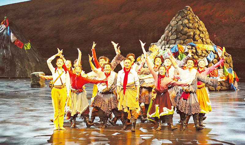 新征程上推出更多增強人民精神力量的優秀作品,就要培育造就大批德藝雙馨的文學藝術家和規模宏大的文化文藝人才隊伍。圖為2022年10月7日,北京舞蹈學院原創民族舞劇《唱支山歌給黨聽》在國家大劇院歌劇院上演,舞劇生動再現黨領導西藏人民開展民主改革、實現繁榮發展這一波瀾壯闊的歷史,表達西藏人民愛黨愛國的深厚情懷。 中國作協供圖