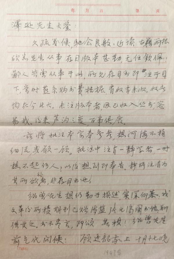 顧廷龍致杜澤遜函(1993年10月17日)