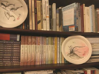 在我的書架上擺放著智量先生贈予的畫。那是幾年前他在上海第六人民醫院的病房里,畫在一次性的餐盤上的,兩幅蘭花,一束菊花,四只蝦,還有一幅無題畫:一只蝦被四只圍攻,遠處的兩只急急地前來,它們各個身軀僨張,除了中間被圍攻的那只。我們稱它為“蝦(瞎)斗”圖。