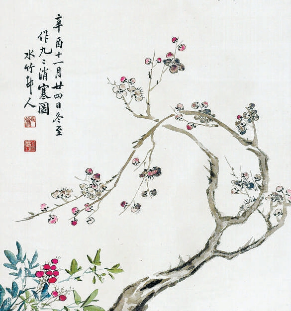 梅花型消寒圖被稱為“雅圖”。圖上先畫素梅一枝,梅花或正或側,或盛開,或尚為花苞,共八十一瓣。每天染紅一瓣,到第九九八十一天時,花瓣全被涂染成了紅色,就是一枝紅梅迎春風。古代閨閣中的女子早起化妝時便用胭脂暈染一瓣,別有趣味。