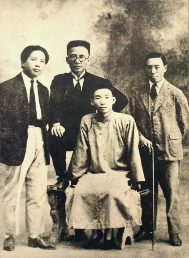 1926年春創造社同人合影,左起為王獨清、郭沫若、郁達夫、成仿吾