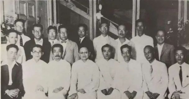 1930年8月,郁達夫(前左二)與魯迅(前左三)在上海應內山完造(后右一)邀請參加文藝漫談會