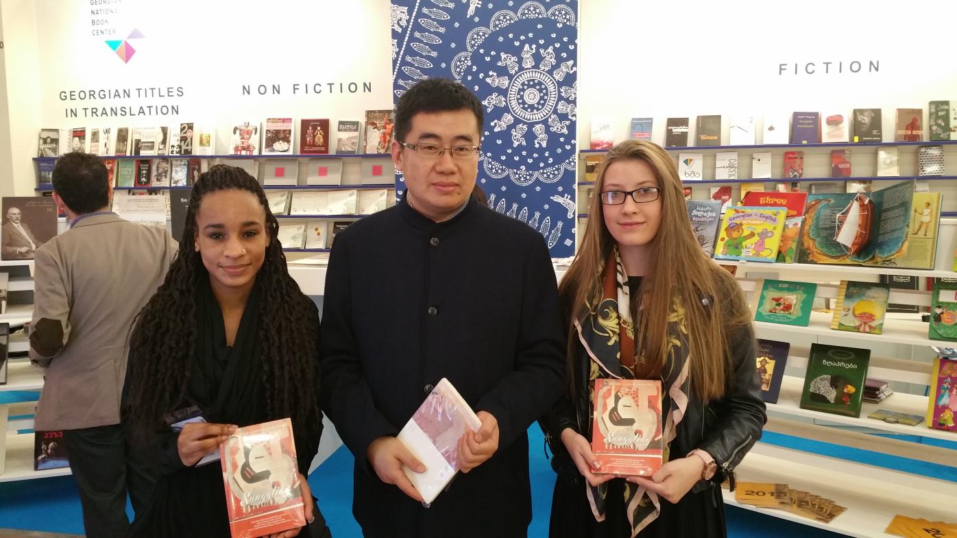 2015年丁捷長篇小說《依偎》英文版出版,丁捷應邀參加倫敦國際書展上的發布活動,與外國讀者在一起。