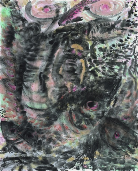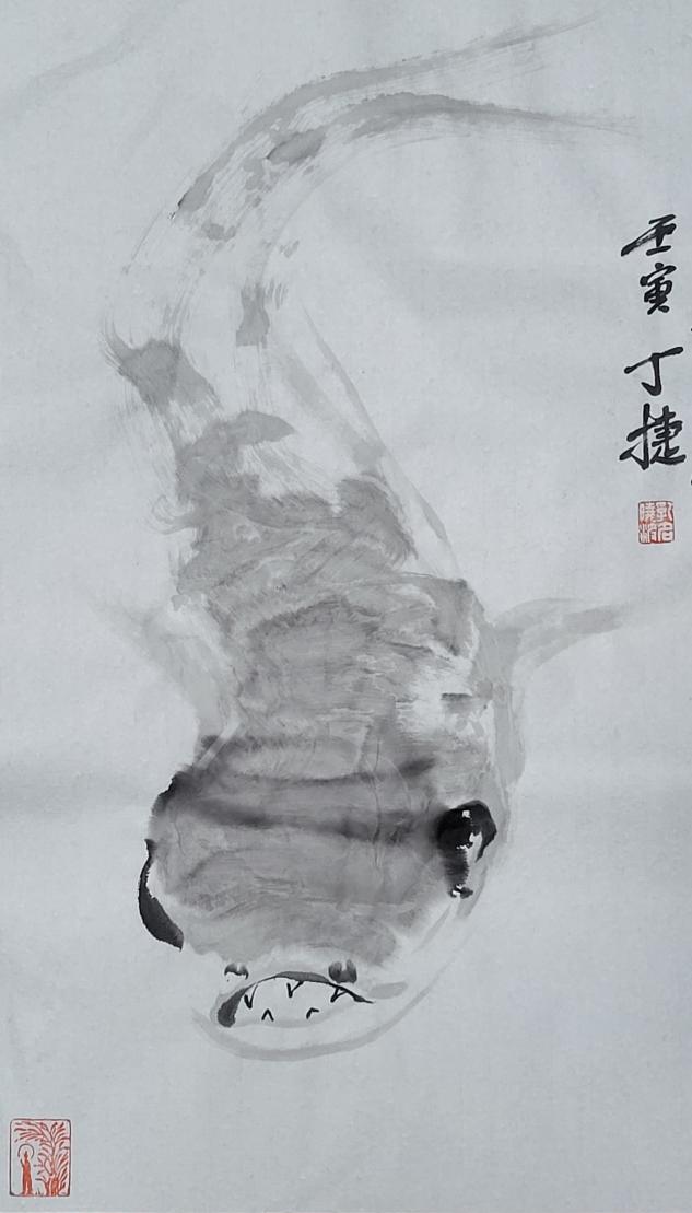 丁捷畫魚從不拘囿于形式的技術分析,而是以迷離的筆墨取代外在的形象,在有形與無形之間遵循一種生命邏輯。著名雕塑家、中國美協副主席、中國美術館館長吳為山說:“大象無形——丁捷吾兄,前身乃酒徒,今世為詩骨,其韻其氣息在有形與無形間。面對他的作品,大愛無言,惟有默契和感動……丁捷讓我對藝術有了深沉反思,只要打破頭腦中既定牢固的套路,惟有受真情所駕馭的思想,才會有新的創造和發現?!?/p>