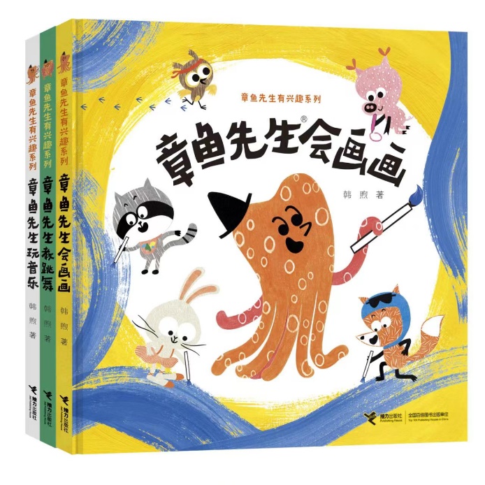 韓煦新作“章魚先生有興趣系列”是超高人氣IP“章魚先生”的新系列。已出版的“章魚先生有辦法系列”累計印量超過了30萬冊,版權輸出到韓國、新加坡等5個國家和地區。新系列中,章魚先生帶著小讀者玩轉美妙音樂、創作充滿想象的繪畫、跳神奇舞蹈,讓小朋友們在玩中提高認知能力。