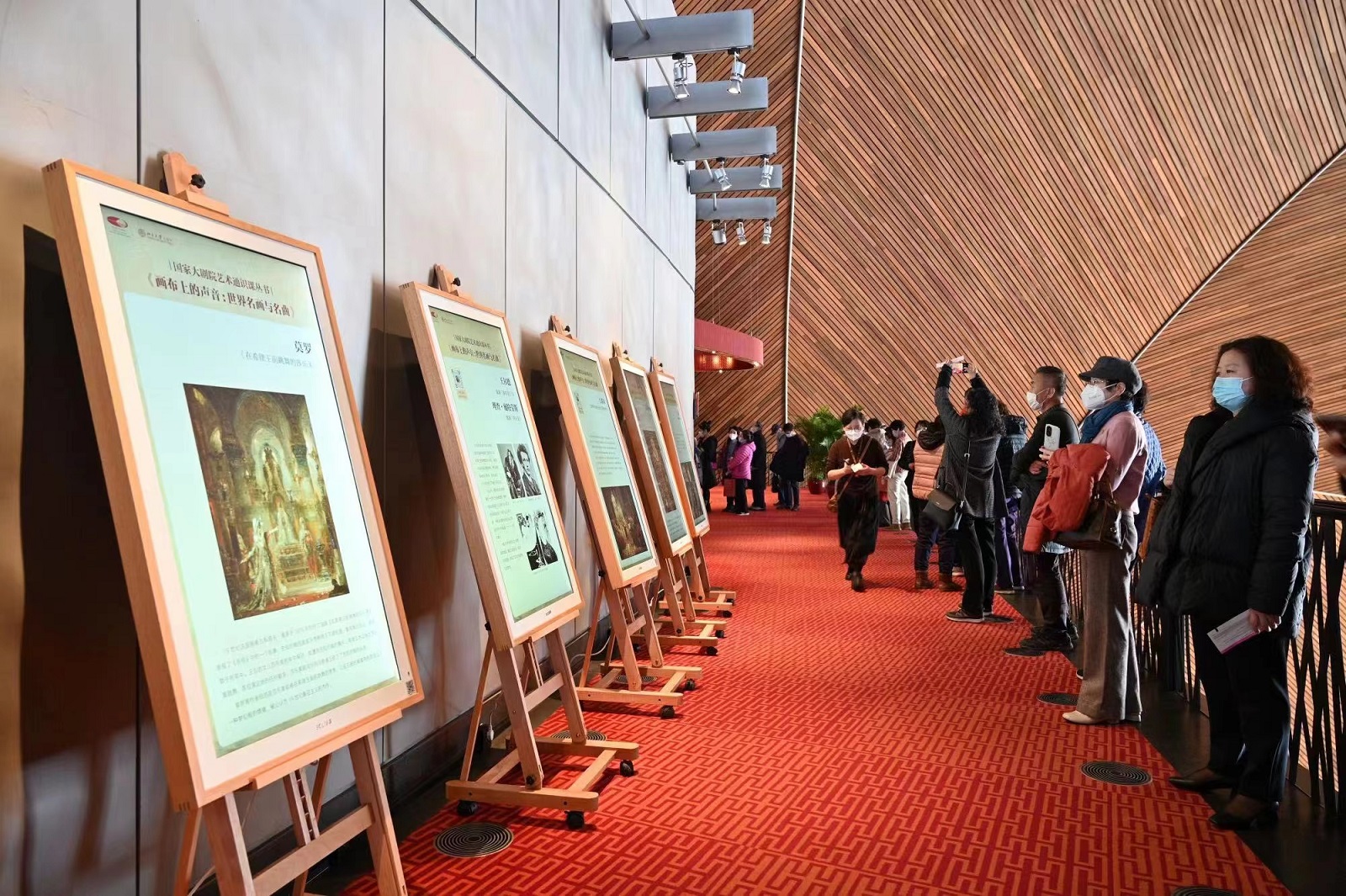 《畫布上的聲音:世界名畫與名曲》采用4K電子畫屏在國家大劇院進行展覽,內容包含書中經典章節及世界名畫與名曲賞析,觀眾可通過展覽行走于音樂與繪畫奇妙的對話和探索之域。從一幅或一組世界名畫入手,深入解讀畫作產生的時代背景、背后的動人故事及藝術品賞細節,以及與畫作相關的著名音樂家和音樂作品,同時通過掃描畫屏上的二維碼還可聆聽到優美的音樂作品。