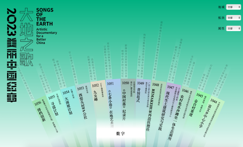 展覽從調研的300多個實踐案例中遴選出近百個具有社會性、藝術性、示范性、創新性和可持續性的典型案例,展現近十年發生在全國各地的或微小或重大的變化。主辦方介紹,展覽也初步搭建了“美麗中國線上檔案交互系統”,觀眾可以通過“地域”選擇找尋家鄉案例,也可以根據板塊內容、實踐屬性篩選特定案例,后期系統也將結合展研空間孿生、檔案地圖譜系、提案跟蹤研究等各功能持續延展迭代。