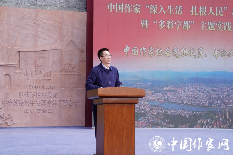 施戰軍在致辭中表示,建立中國作家“深入生活、扎根人民”新時代文學實踐點是中國作家協會深入學習貫徹黨的二十大精神的重要文學舉措,是深入貫徹落實習近平總書記在中國文聯十一大、中國作協十大開幕式上的重要講話精神的舉措之一,也是中國作協致力于推動新時代文學高質量發展、改革創新文學工作的一個文學品牌。建立文學實踐點的目的,就是立足于作家創作與生活、與時代、與人民的關系,不斷豐富作家深入生活、扎根人民的渠道,為作家面向社會、面向基層深入體察人民生活、積累挖掘文學素材、廣泛開展文學服務提供重要的機制和載體。中國作家協會自去年開始,陸續在全國推出和建立了一批中國作家“深入生活、扎根人民”新時代文學實踐點,產生了廣泛的社會影響。江西,含蘊著紅色文化、山水文化、書院文化、臨川文化、廬陵文化、豫章文化、客家文化等豐沛的本土文化資源,是一座文學的富礦。寧都是“一座沒有圍墻的博物館”。這里曾是中央革命根據地中心,中共蘇區中央局和全國紅軍的最高指揮機關中華蘇維埃中央革命軍事委員會都曾設在這里。寧都還是文鄉詩國,無論是宋代大詩人鄭獬、蕭立之,還是清初散文三大家之一魏禧為代表的易堂九子等名人大家,都彰顯著這里深厚的文脈底蘊。寧都是客家搖籃,客家民俗活動多姿多彩,是江西唯一的中國客家民俗文化之鄉。寧都還是全國首批100個生態環境建設示范縣之一,生態文明建設成就突出。因為寧都所具有的深厚文化歷史積淀,以及鮮明的時代特色和卓越的建設成就,中國作協決定在江西寧都授牌設立中國作家“深入生活、扎根人民”新時代文學實踐點。