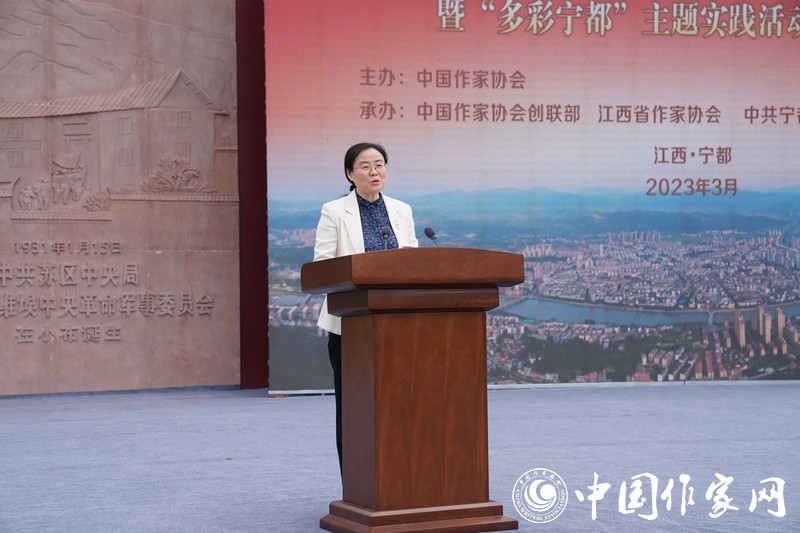 饒利萍在主持儀式時表示,中國作家“深入生活、扎根人民”新時代文學實踐點授牌暨“多彩寧都”主題實踐活動啟動,是贛鄱大地上的強勁春訊,是江西文藝界的大事、喜事。江西省文聯和省作協將大力支持新時代文學實踐點各項工作,相信在中國作協的大力支持下,實踐點將成為展示革命老區發展建設成就和人民精神風貌的重要窗口,成為催生文學精品力作的重要基地。