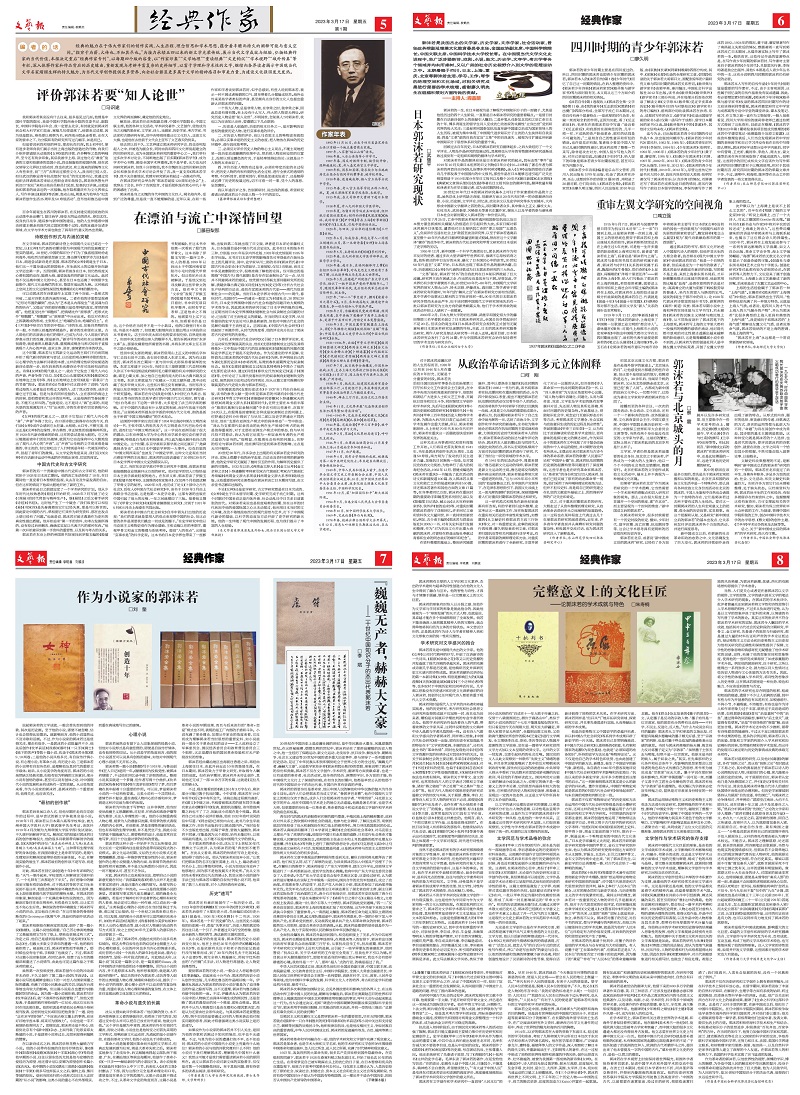 郭沫若是我國杰出的文學家、歷史學家、文字學家、社會活動家,曾任政務院副總理兼文化教育委員會主任、全國政協副主席、中國科學院院長、中國文聯主席、中國科學技術大學校長等。在中國現當代文學文化史進程中,他廣泛涉獵新詩、戲劇、小說、散文、歷史學、文字學、考古學等各個領域并均有所建樹,又以廣闊的社會歷史視野介入到文學的思想運動之中。本期著眼于四川、日本、上海、重慶、北京等郭沫若生活、學習、工作、寫作的地理空間和文化場域,對相關研究成果進行簡要的學術梳理,感謝廖久明先生在組稿和策劃方面所做的貢獻。