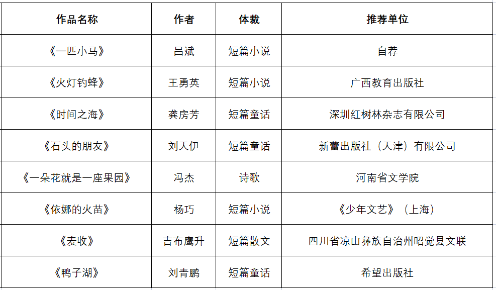第五屆張天翼兒童文學獎獲獎名單公示