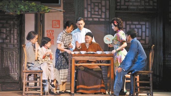 其實,三卷本長篇小說《四世同堂》作為老舍“從事寫作以來最長的,可能也是最好的一本書”,規模龐大、結構復雜、人物繁多,問世以來一直被話劇界敬而遠之。雖然改編難度顯而易見,但這也激起了李東的挑戰欲:“這個改編的門檻一旦越過去以后,你就把別人擋在外面了?!背松頌楸本┤藢仙嵛淖值奶厥馇楦?,他也坦言,制作《四世同堂》還有更重要的考量,就是希望能通過做一部戲來向《茶館》致敬,同時也是想在這個過程中探索京味兒戲在創作上更多的可能性。