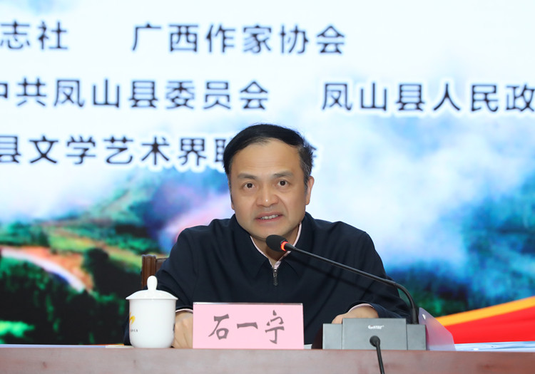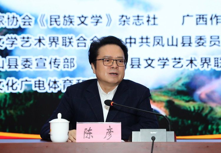 3月31日至4月3日,由《民族文學》雜志社、廣西作家協會、廣西河池市文聯,中共鳳山縣委、縣人民政府主辦的“新時代 新征程——《民族文學》創閱中心河池現場經驗交流會暨多民族文學名家走進鳳山”活動在廣西鳳山縣舉行。中國作協黨組成員、副主席、書記處書記陳彥,《民族文學》主編石一寧,廣西文聯主席、作協主席東西,中共河池市委常委、宣傳部長孔獻玲,河池市文聯黨組書記、主席潘紅日,《民族文學》副主編楊玉梅,中共鳳山縣委書記薛海源、縣人民政府縣長楊勝濤、縣人大常委會主任羅國照、縣政協主席韋海山,縣委副書記黎舉孟,以及牙韓彰、潘靈、石朝雄、興安、巴桑、韋秀觀、李卓瑪等多民族作家,《民族文學》創閱中心負責人及作家代表,河池市和鳳山縣作家代表、部分文學愛好者參加本次活動。