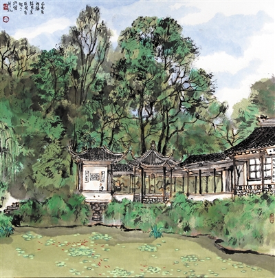 “時代新象——中國藝術研究院國畫院第五屆院展”上的中國畫《無錫寫生——錫惠園林一景》,作者許俊。