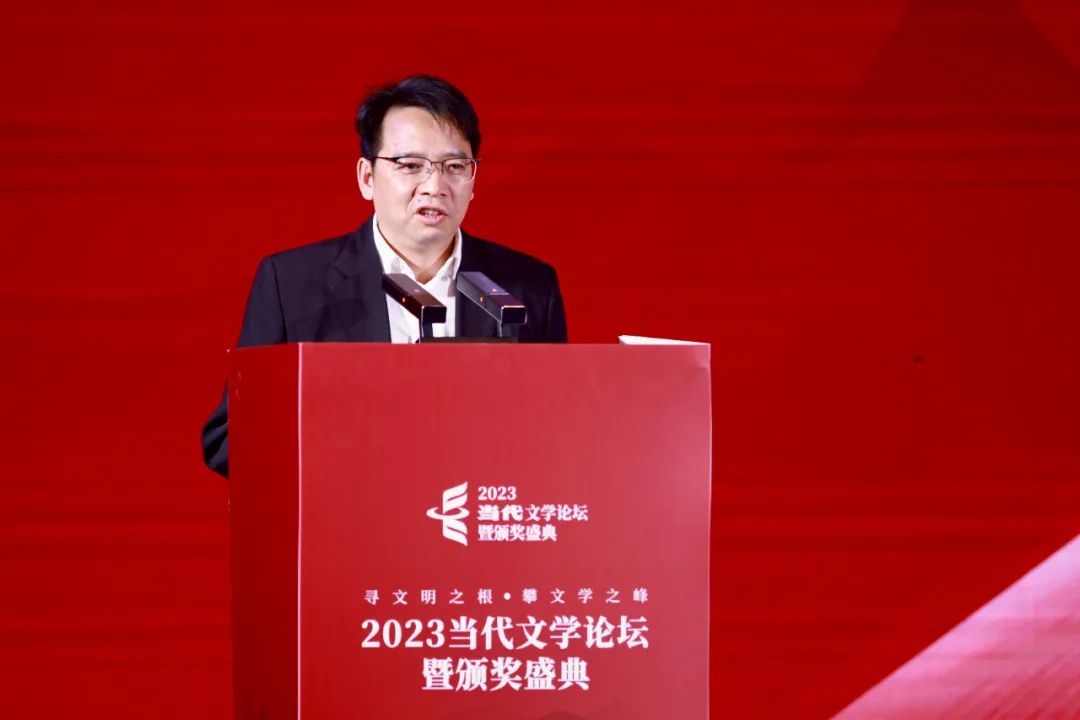 陳永剛副總經理代表中國出版集團對本次活動的成功舉行表示祝賀,他表示,中原文化博大精深、源遠流長?!懂敶肺膶W論壇暨頒獎盛典移師中原大地,讓文學回到文化的原鄉,對于推動當代文學的發展具有重要的標志性意義。尤其是這次活動在世界讀書日前夕舉辦,將為開展全民閱讀、建設書香社會、弘揚中華優秀文化起到極大的推動作用。