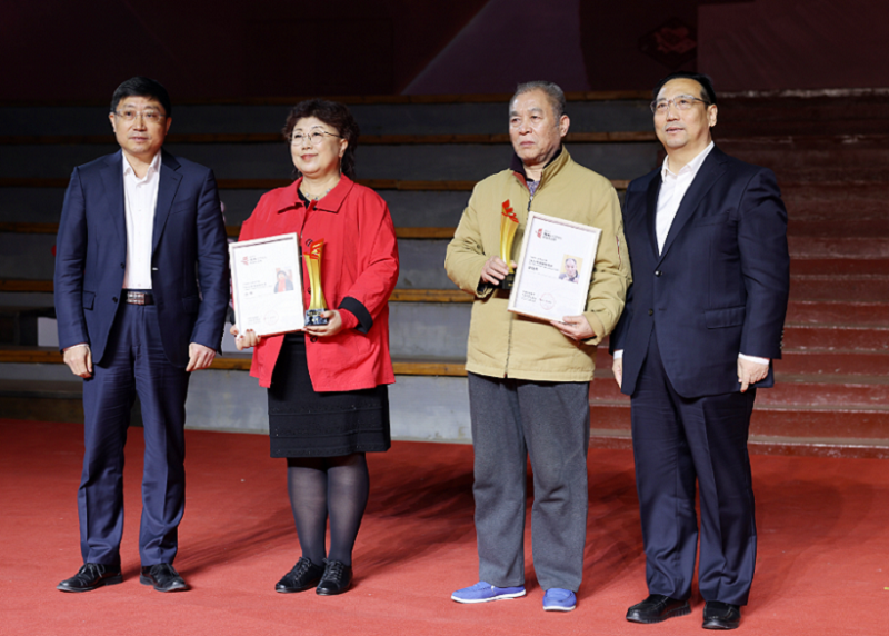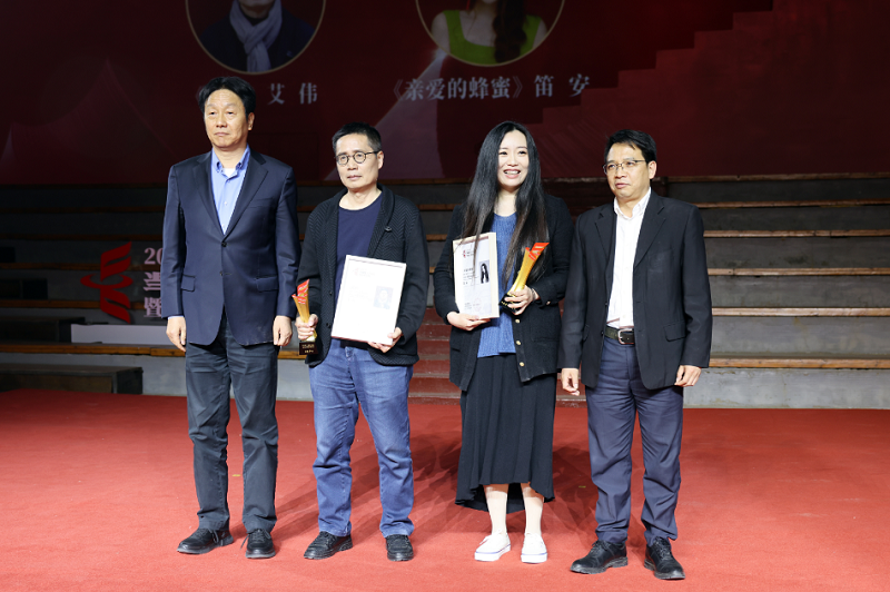河南省政協民族和宗教委員會副主任董林、人民文學出版社總編輯李紅強為年度長篇得主艾偉、笛安頒獎