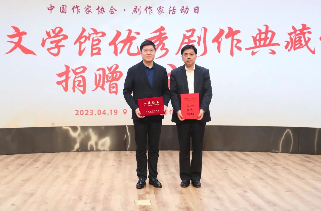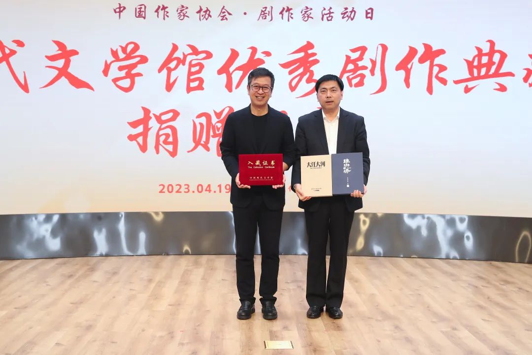 活動現場,劉和平向中國現代文學館捐贈了電視劇《雍正王朝》、祁劇《甲申祭》手稿,中國現代文學館常務副館長王軍代表中國現代文學館接受捐贈并向劉和平回贈入藏證書。9家影視公司代表向中國現代文學館捐贈了優秀劇本或光盤,王軍代表中國現代文學館接受捐贈。其中,中影公司黨委書記、董事長傅若清捐贈電影《流浪地球》《流浪地球2》劇本,湖南廣播電視臺副臺長徐蓉捐贈《江山如此多嬌》劇本,愛奇藝CEO龔宇捐贈電視劇《風吹半夏》劇本,優酷總裁樊路遠捐贈電視劇《覺醒年代》《幸福到萬家》劇本,新麗傳媒副總裁田甜捐贈電視劇《人世間》劇本,華策影視董事長趙依芳捐贈電視劇《我們這十年》《萬里歸途》劇本,東陽正午陽光董事長侯鴻亮捐贈電視劇《瑯琊榜》《大江大河》劇本,博納影業集團行政總裁蔣德富捐贈電影《智取威虎山》《烈日灼心》《烈火英雄》劇本,騰訊視頻影視部副總經理黃杰捐贈電視劇《三體》劇本。