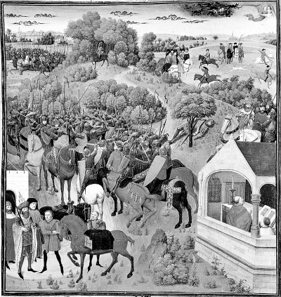 在古代,詩與歌相伴而生,密不可分,我國的《詩經》便保存了很多民間歌謠,唐詩宋詞亦可吟唱。在法國文學發端的中世紀,所有文學體裁最初皆由詩體承載。創作于公元9世紀末的《圣女歐拉麗贊歌》是迄今發現的第一篇法語文學作品,是一首歌頌少女歐拉麗以身殉教的宗教贊歌。武功歌是歌頌王公貴族戰功和騎士精神的史詩,在12世紀達到鼎盛。它源自民間口傳文學,由行吟詩人在街頭里巷和村莊城堡中傳唱,具有很強的音樂性和節奏感,其中也不乏如副歌般重復出現的段落。武功歌中以11世紀末的《羅蘭之歌》最為知名。12—13世紀,在法國南方,從利穆贊到普羅旺斯地區,宮廷詩人創作以典雅愛情為主題的抒情詩,歌頌騎士心目中理想化的愛情和對心上人的思念,并且譜曲吟唱,這些逃離現實的詩與歌構筑了宮廷的文化生活。同樣,貴族女性從事女紅的時候思念遠方的騎士戀人,織布歌便成為她們表達情意的藝術方式。這些早期的法語文學作品皆以歌自稱。