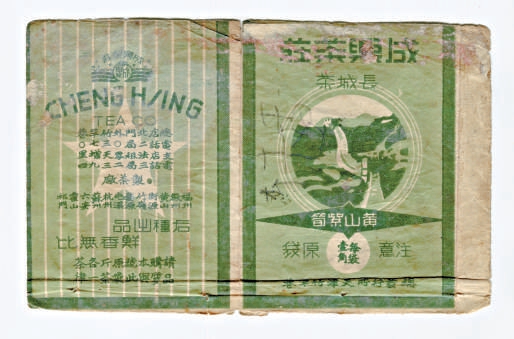 成興茶莊管理層觀察后,發現了消費者的痛點。第一,上等茉莉花茶動輒十多塊大洋一斤,老百姓就是買半斤也覺得吃力??墒钦l又不想喝好茶呢?哪怕是逢年過節偶爾享受一下也好啊。第二,傳統茉莉花茶一般都是半斤一包,顧客買回去再自己倒進茶葉桶??扇绻鲩T吃飯看戲,想喝順口的好茶就很難了。您總不能揣著大茶葉桶滿街溜達吧?顧客的痛點,就是商家的商機。于是,1940年成興首創袋茶,將上等茉莉花茶分裝成了小包裝。筆者就收藏有一張成興茶莊小袋茶的包裝紙,品類是“黃山紫筍”,標價為“每袋一角”。成興茶莊小袋茶包裝嚴格,紙質堅固,印刷美觀,有兩層紙包裝,外袋為模造紙,內裝為有光紙,用漿糊封口,不論在分量質量方面,都很讓用戶放心。老百姓在接待賓朋時,花上五分或一角買上一袋,花不多的錢就能喝到一壺好茶,既方便又經濟,故而一下子十分暢銷。筆者收藏的這只成興小袋茶右側繪有萬里長城八達嶺一段,長城的“城”與成興的“成”諧音,故而此茶也稱長城茶。小袋茶左側有商標,是長城上繪有數顆明星,“城星”與“成興”諧音,又含有似長城之永固,如明星之高照的意義,可謂極盡巧思。