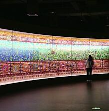 唐卡藏語意為“卷軸畫”,常見的唐卡作品長寬都在1米左右,這幅長618米的巨幅唐卡尺寸之大,實屬罕見。整幅作品由金銀、珊瑚、瑪瑙、珍珠、綠松石等純天然礦物配制的顏料繪制而成,上下裝飾的堆繡圖案達3000多種。藏文化博物院用四層整層對其進行了完整展示,蜿蜒曲折的展線讓人仿佛徜徉于歷史長河。