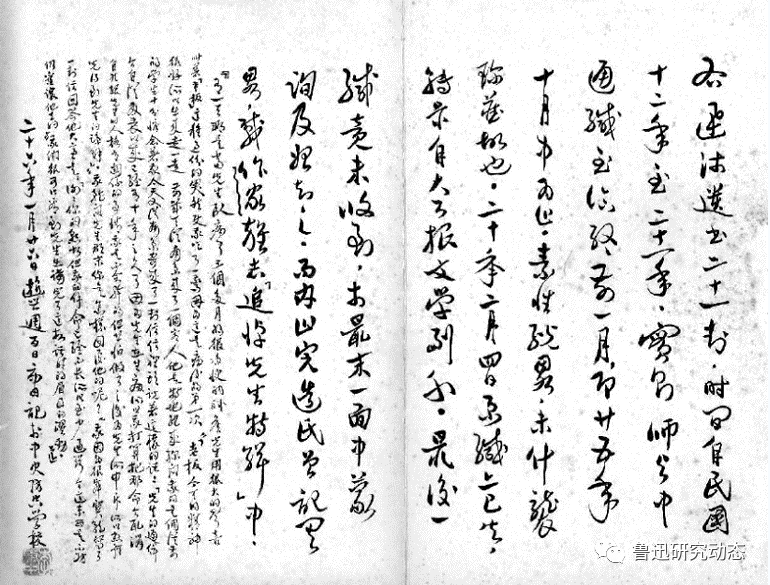 右迅師遺書二十一封,時間自民國十二年至二十一年,實則師與中通緘至臨終前一月,即廿五年十月中為止。素性脫略,未什襲珍藏故也。二十年二月四日原緘亦已失,轉錄自《大公報》文學副刊。最后一緘竟未收到,于最末一面中蒙詢及始知之,而內山完造氏曾記其略,載《作家》雜志“追悼先生特輯”中。