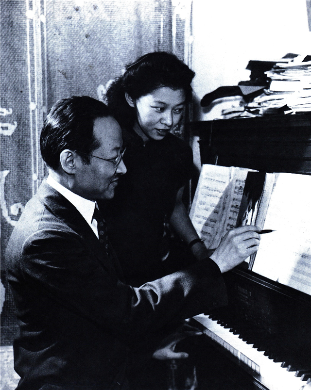 1944年,趙元任在哈佛寓所跟女兒趙如蘭談論音樂。