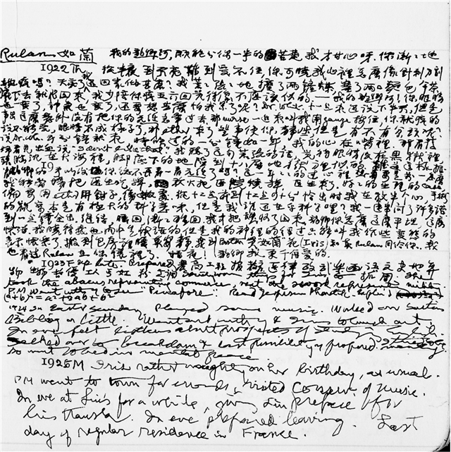 日記第10冊內文,1922年趙元任的第一個女兒趙如蘭誕生,4月20日他寫了一篇長長的日記表達對妻子女兒的愛。
