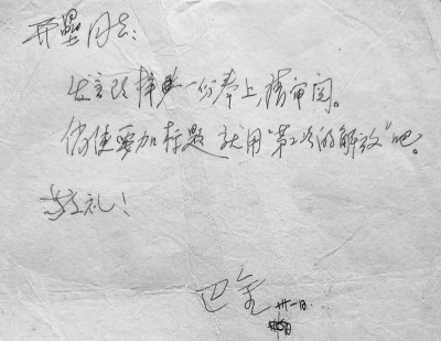 一封巴金短箋與“第二次的解放”
