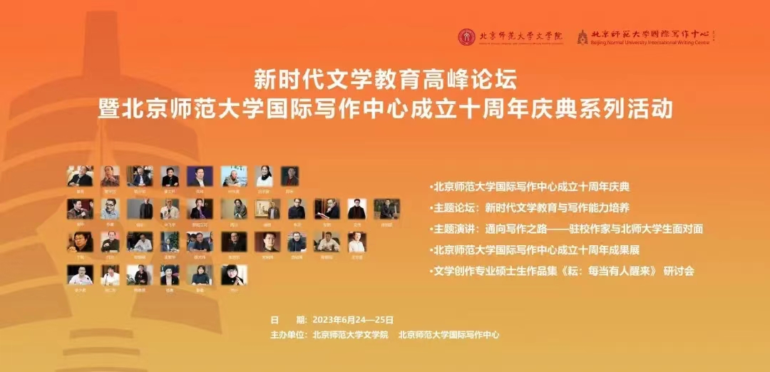 6月24日下午,北京師范大學國際寫作中心成立十周年慶典系列活動之“新時代文學教育與寫作能力培養”的主題論壇舉行,曹文軒、陳曉明、孟繁華、張清華、張旭東、宗仁發、陳福民、王宏圖、宋明煒、李少君、徐可、何平、楊青、徐則臣、魯敏、喬葉、張檸、張莉、馬兵、楊慶祥、饒翔、黃平、李利芳、吳景明、叢治辰、季亞婭、徐晨亮、李蔚超、張同道、李蘭玉、張菁、何同彬、曾攀、崔欣、陳暉、沈慶利、梁振華、張國龍、姜肖、白惠元等出席會議。