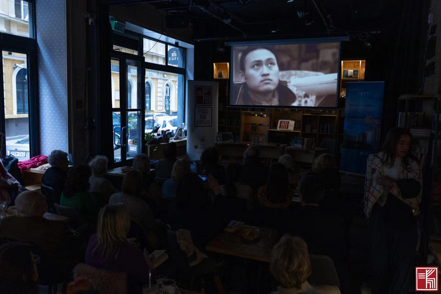 余澤民是作家、翻譯家,中國作家協會會員,擁有豐富的工作經歷,現旅居匈牙利,著有《匈牙利舞曲》《狹窄的天光》《紙魚缸》等作品,譯作有《命運無?!贰读硪粋€人》《船夫日記》《燭燼》等?;顒右砸欢翁貏e的短片和朗讀拉開序幕:銀幕上播放著從余澤民參演的多部電影、紀錄片片段剪輯成的視頻短片,畫外音則是由施塔勒·艾絲特(Stáhl Eszter)和成剛分別用匈語和漢語誦讀的《紙魚缸》片段。畫面里,小說家漫步在布達佩斯的街道、自由大橋或多瑙河畔,以一個中國人的視角展示著流動的風景。短片如同一次時間旅行,立即將觀眾帶回到了90年代的氛圍里。