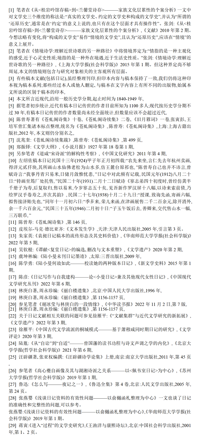 雖然近現代之前,由于史料遺存相對較少,稿本日記更難獲得,情境文學史的建構會有諸多困難。即便如此,其研究亦可借助從近現代稿本日記中獲得的經驗,反推或模擬自身的情境文學史,將文獻碎片努力拼合為歷史的整體圖景,這同樣是值得肯定和嘗試的一種學術路徑。