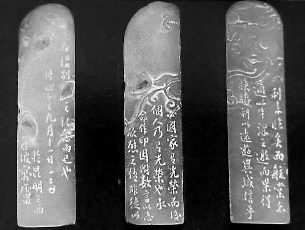 一九四五年九月,陳寅恪與邵循正、孫毓棠、沈有鼎將赴英倫講學,聞一多應孫毓棠請,為之刻名章,名章自然極有紀念意義,更難得的,是聞氏刻了少見的長篇邊款,其內容符合了歷史六要素(何人、何時、何地、何事、如何、何故),內容既完整、又很有溫度。其云: