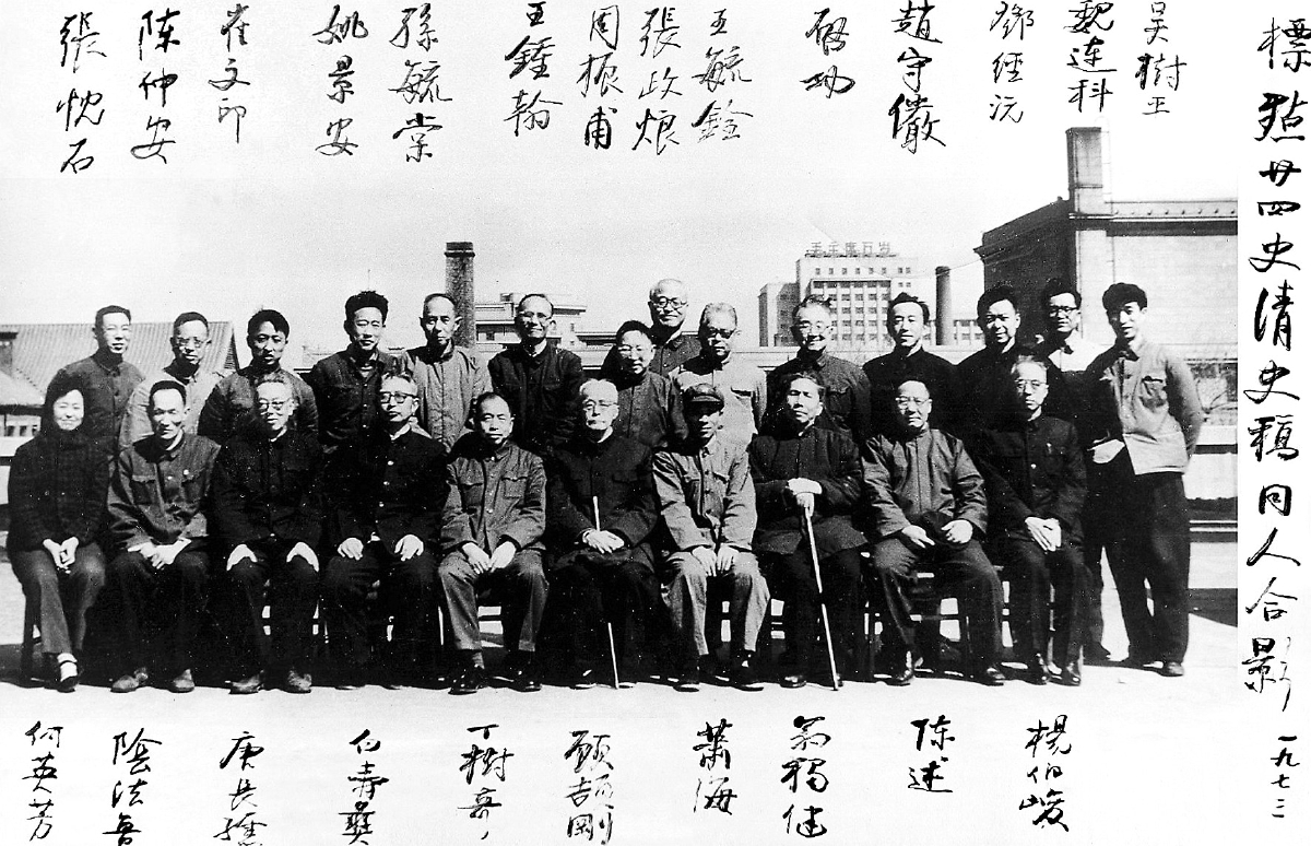 《清史稿》標點人員合影,后排左五為孫毓棠。名字由啟功手寫。