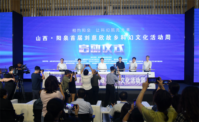 8月15日,由山西省委宣傳部指導,山西省文聯、山西省作協、陽泉市委宣傳部共同主辦的首屆劉慈欣故鄉科幻文化活動周在山西省陽泉市啟動?;顒又黝}為“相約陽泉 讓科幻照亮未來”。山西省委常委、宣傳部部長張吉福,山西省文聯黨組書記李斌,山西省作家協會黨組書記邢利民,陽泉市委書記雷健坤,陽泉市委常委、宣傳部部長郭曉東,中國作協科幻文學委員會主任、山西省作協副主席劉慈欣,《科幻世界》雜志副總編輯姚海軍等出席啟動儀式。