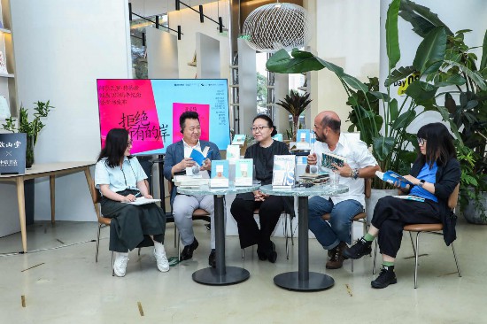 這天下午,哥倫比亞書商、文學研究者及作家策展人阿爾瓦羅·卡斯蒂略·格拉納達,學者戴錦華,作家、詩人邱華棟,詩人周瓚,文學編輯張引弘來到北京中信書店啟皓店,以“拒絕所有的岸”為主題,暢談他們眼中的穆蒂斯,并觀看根據其小說《馬克洛爾的奇遇與厄運》第二部分改編的電影《伊蓮娜在雨中到達》。