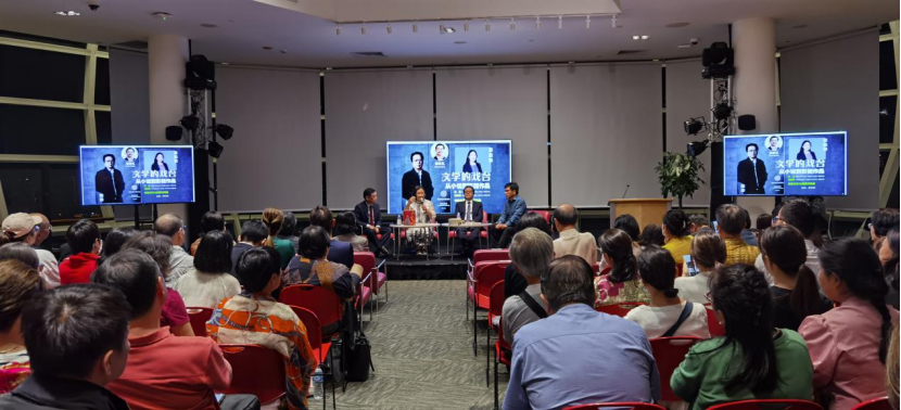 9月8日晚,燈火通明的新加坡國家圖書館。150多位新加坡讀者齊聚一堂,用熱情的掌聲歡迎來訪的中國作家代表團。一場期待已久的文學座談會在眾人的期待中如期舉行。座談會主題為《文學的戲臺——從小說到影視作品》,主講嘉賓為中國作家陳彥和蔣勝男,對談嘉賓為新加坡國家文化獎項主席、長者智庫高級顧問蔡志禮博士。駐新加坡使館文化參贊秦文等嘉賓出席了活動。