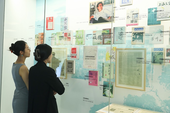 “新中國文學的‘金線與瓔珞’——王蒙文學創作70年文獻展”也在9月27日正式向公眾開放。展覽由中國現代文學館主辦、王蒙文學藝術館協辦,分為“青春萬歲”“這邊風景”“春之聲”“活動變人形”“笑的風”五個單元,并設置有創意互動元素,生動鮮活地展示出王蒙70年來與共和國同成長的生命歷程與創作成果。(攝影:王紀國)