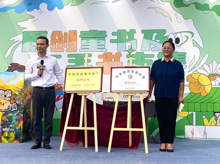 發布會現場,吳楓楠和徐懷宜為“中國原創童書推廣基地”“繪本教育多維應用示范基地”揭牌,這也是“童心解碼”繪本推廣在北京成立的第一個示范基地,將在全國成立更多示范基地,推動全國原創童書事業長足發展。